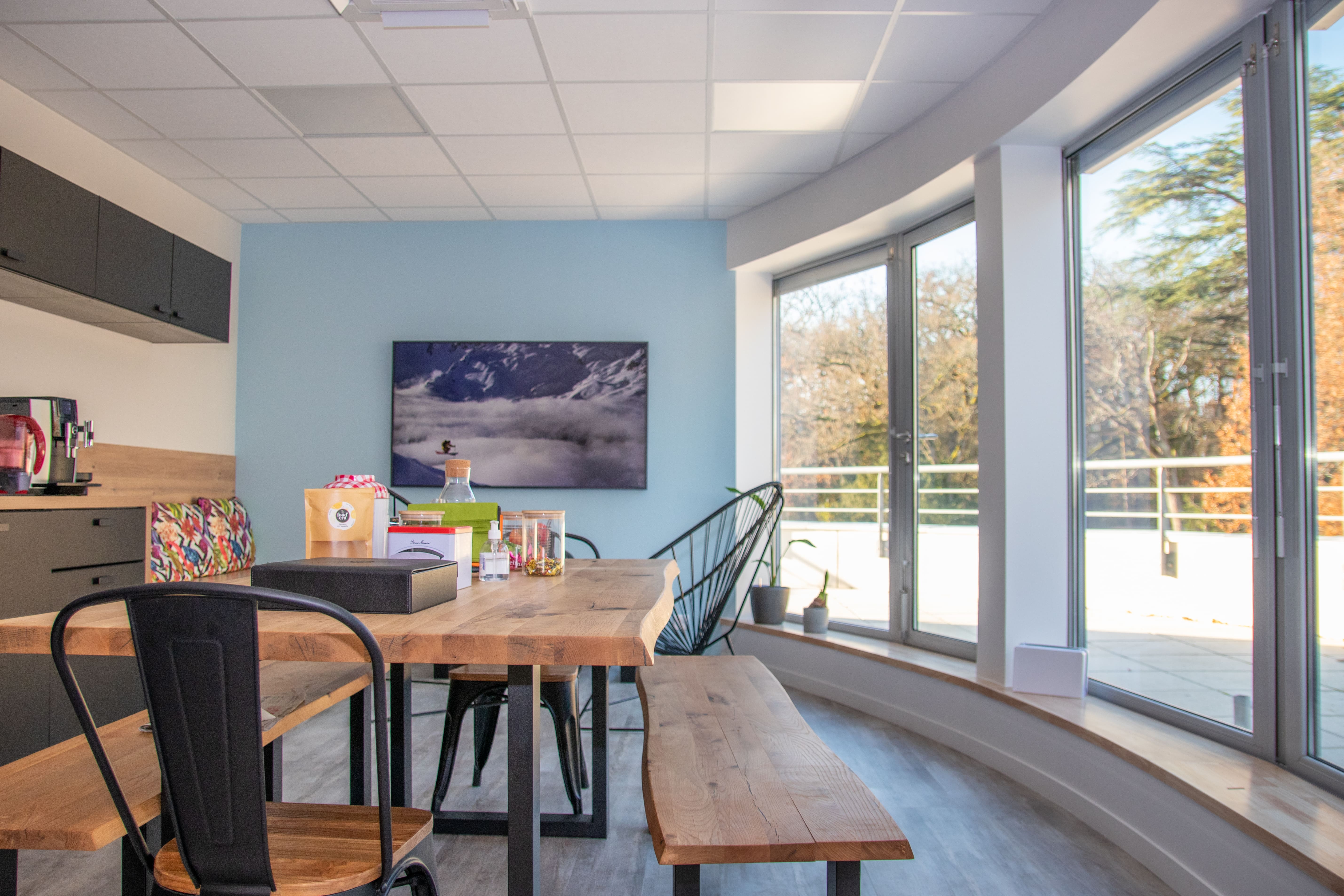 Salle de réunion avec terrasse et vue sur Carquefou entièrement modulable en fonction de vos besoins.